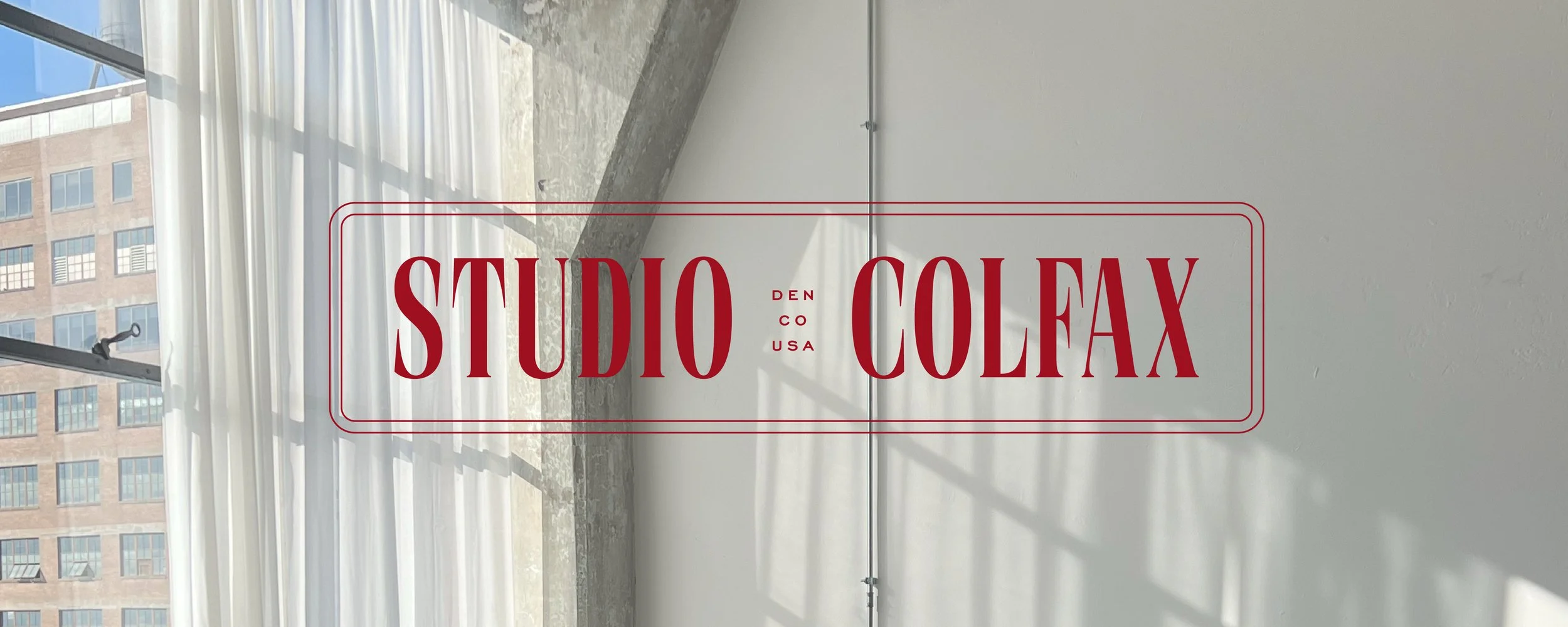 The Studio Colfax logo suite is sophisticated and balanced, with each element being thoughtfully and strategically incorporated to match the ideal overall feeling of the brand. The classic serif font used is elevated and timeless, paired with a luxurious script and a modern blocky sans serif, these fonts are balanced and create a perfect dynamic flow to the words. The hand drawn vintage key adds personality and softness to the logos and is a nod to Colfax Ave’s rich history. The key is a welcoming symbol for community, such as having your friend’s house key, while also symbolizing the studio being a place to unlock your creative potential. Like the studio space itself, the branding pairs rounded, soft elements with straight-edged industrial elements to add dimension and versatility to the overall feeling of the brand. The main logo features a long rectangular shape, similar to that of a street sign, as a nod to Studio Colfax’s namesake.